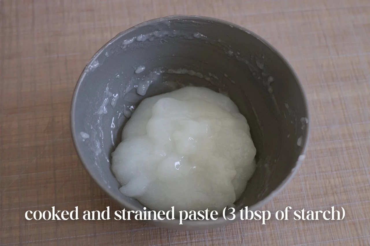 Mix 5 parts (by volume) cool water with 1 part jin shofu in your cooking pot. Stir constantly while bringing it to a low boil on medium heat. When it begins to boil turn heat down to low and continue stirring for 15-30 minutes (more time for more paste). The paste will go through two cooking stages: translucent, then opaque again. Lift your spoon and the paste should create a V shape as it drops. The V should be about an inch long. Test the tackiness with your fingers. Allow paste to rest and cool. Strain through fine mesh before using.